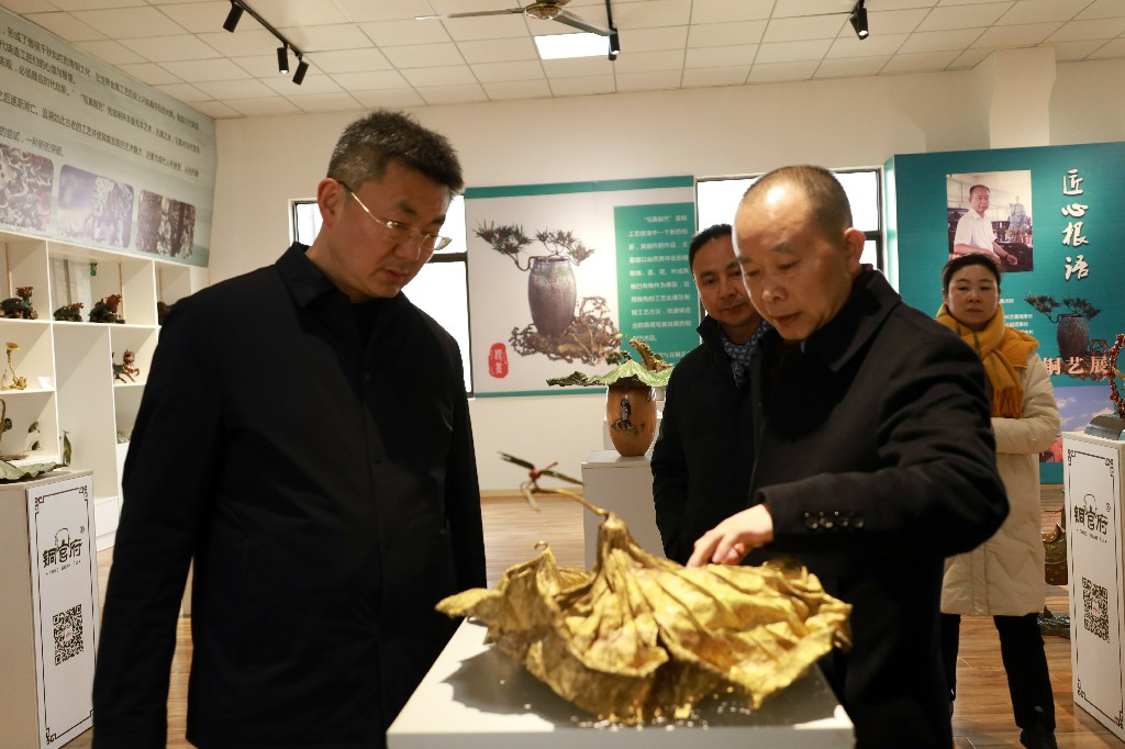 12月28日下午,銅官區(qū)區(qū)委書記王書春到銅官府銅藝文化產(chǎn)業(yè)園調(diào)研指導(dǎo),區(qū)委常委、常務(wù)副區(qū)長汪志祥陪同。銅官府趙敏及金星銅、大明銅匠負(fù)責(zé)人匯報(bào)了企業(yè)經(jīng)營發(fā)展情況。